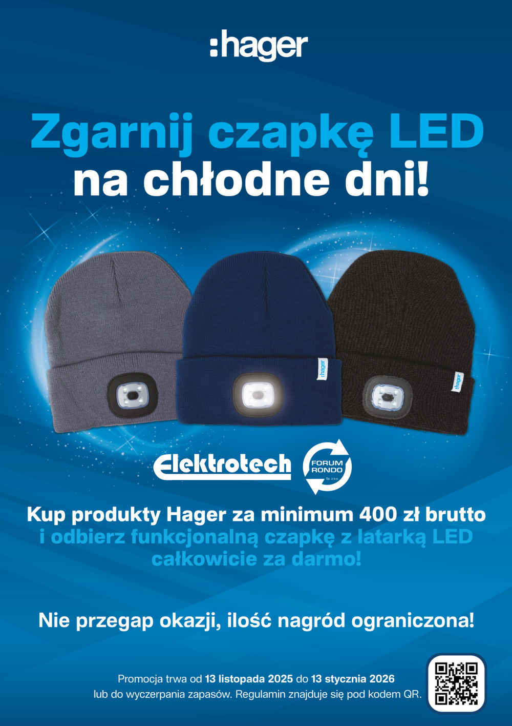 Zrób zakupy produktów 𝗛𝗮𝗴𝗲𝗿, 𝗕𝗲𝗿𝗸𝗲𝗿 lub 𝗧𝗲𝗵𝗮𝗹𝗶𝘁 za min. 400 zł brutto i odbierz praktyczną czapkę LED - idealną na zimowe dni!